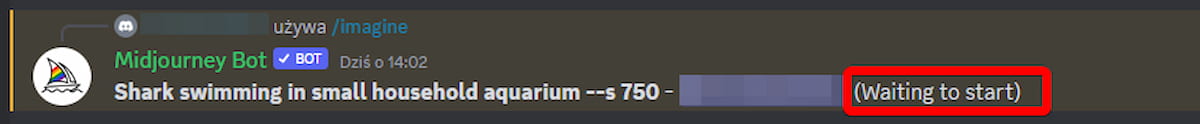 Zatwierdzamy przyciskiem “enter”. Po chwili powinien pojawić się komunikat z naszym promptem i oznaczeniem (najpierw będzie to “waiting to start”, następnie pokazany będzie % postępu)